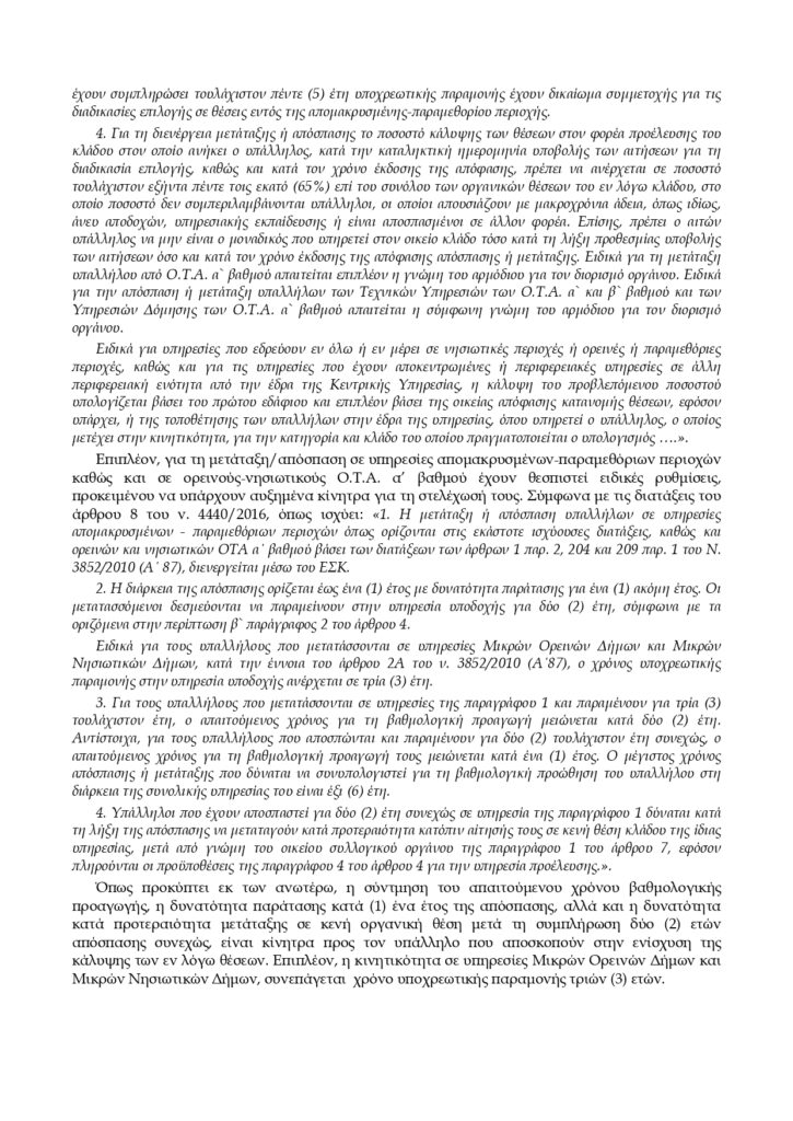 – Η πλήρωση τριακοσίων τριάντα (330) θέσεων Δόκιμων Πυροσβεστών και Δόκιμων Ανθυποπυραγών στις Σχολές της Πυροσβεστικής Ακαδημίας, εξακοσίων (600) Πυροσβεστών Γενικών Καθηκόντων και ενενήντα μίας (91) θέσεων εξειδικευμένου προσωπικού όπως Χειριστές Αεροσκαφών / Ελικοπτέρων, Τεχνικοί Αεροσκαφών – Ελικοπτέρων, Πλοηγοί, Πληροφορικής και Επικοινωνιών, κ.α. οι οποίες κατανέμονται στις κατά τόπους υπηρεσίες με απόφαση του Υπουργού Κλιματικής Κρίσης και Πολιτικής Προστασίας.