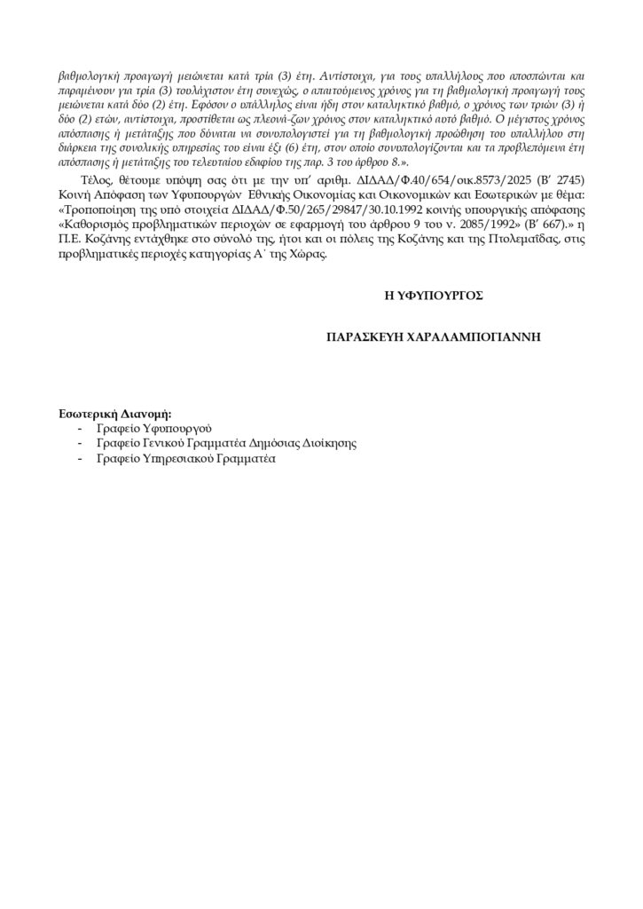 Τέλος, στην απάντησή της η κυρία Υφυπουργός αναφέρεται σε κατ΄ εξαίρεση (σε εφαρμογή της Ρήτρας Δίκαιης Μετάβασης) διακριτές θεσμικές παρεμβάσεις που εφάρμοσε το Υπουργείο Εσωτερικών για την ενίσχυση του ανθρώπινου δυναμικού των υπηρεσιών της περιοχής.